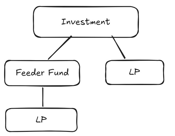 - Feeder Fund: You give your money to an investment vehicle, which gives your money to the operator.